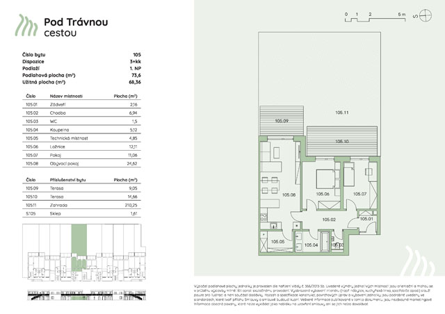 | 105 | 1. NP | 3+kk | 73,57 m2 | 23,71 m2 | 210,25 m2 | volný | 7 990 000 Kč | Rezervace |
