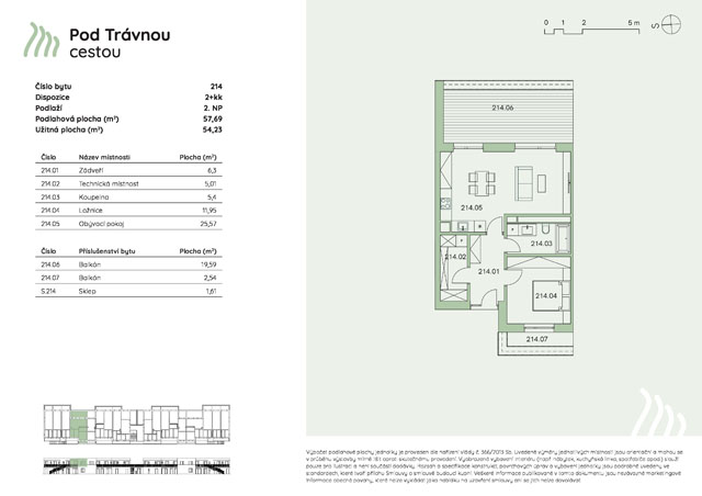 214 2. NP 2+kk 57,69 m2 19,59 m2 - prodáno 6 490 000 Kč