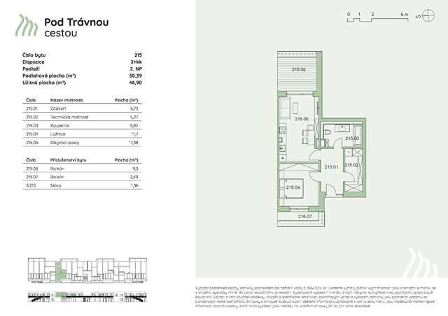 215 2. NP 2+kk 50,39 m2 9,30 m2 - prodáno 5 790 000 Kč