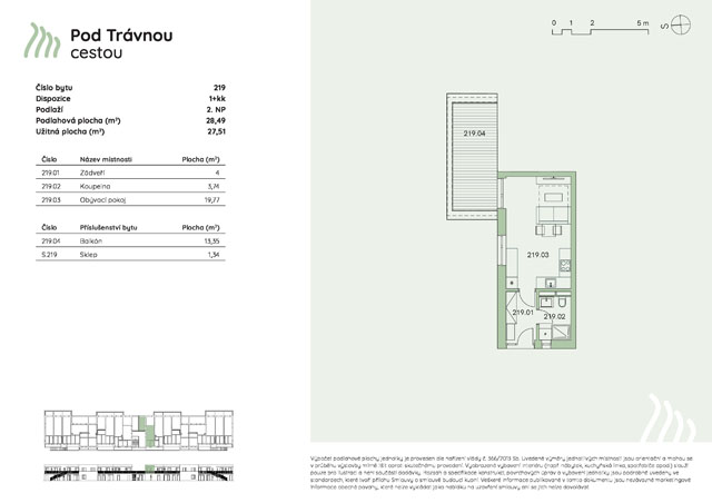 219 2. NP 1+kk 28,64 m2 13,33 m2 - prodáno 0 Kč