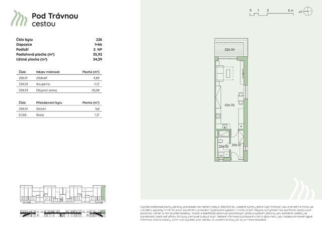 226 2. NP 1+kk 35,92 m2 5,60 m2 - prodáno 0 Kč