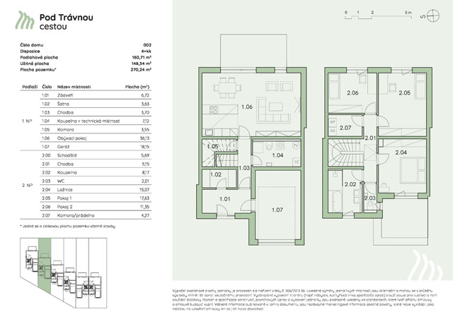 Soubor PDF s půdorysem a podrobnými informacemi o řadovém domu.