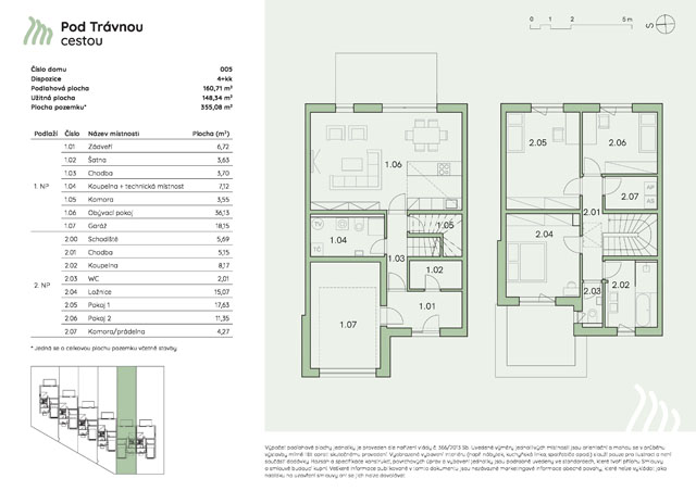 | 5 | 4+kk | 160,71 m2 | 12,5 m2 | 193,55 m2 | 31,03 m2 | 28,97 m2 | volný | 11 090 000 Kč | Rezervace |